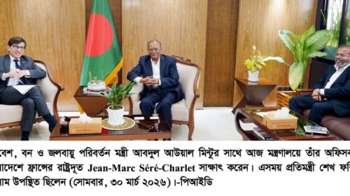 নিজস্ব প্রতিবেদক//পরিবেশ, বন ও জলবায়ু পরিবর্তন মন্ত্রীর সাথে ফ্রান্সের রাষ্ট্রদূতের সাক্ষাৎ।। ঢাকা, ১৬ চৈত্র (৩০ মার্চ): পরিবেশ, বন ও জলবায়ু পরিবর্তন মন্ত্রী আবদুল আউয়াল মিন্টুর সাথে আজ বাংলাদেশ সচিবালয়ে তাঁর দপ্তরে বাংলাদেশে নিযুক্ত ফ্রান্সের রাষ্ট্রদূত…