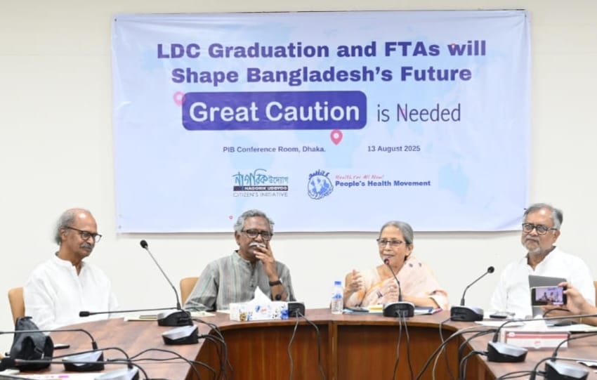 উপদেষ্টা আজ সকালে প্রেস ইনস্টিটিউট অব বাংলাদেশ (পিআইবি) কনফারেন্স রুমে নাগরিক উদ্যোগ ও পিপলস হেলথ মুভমেন্ট আয়োজিত “বাংলাদেশের ভবিষ্যত নির্ধারণী উন্নয়নশীল দেশ হিসেবে উত্তরণ ও দ্বিপাক্ষিক মুক্ত বাণিজ্য চুক্তি বিষয়ে সতর্ক পুনর্বিবেচনা প্রয়োজন”- শীর্ষক মতবিনিময় সভায় প্রধান অতিথির বক্তব্যে এ কথা বলেন।