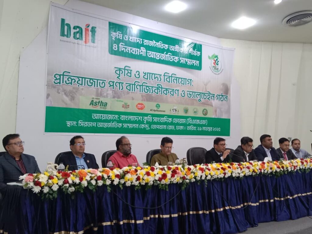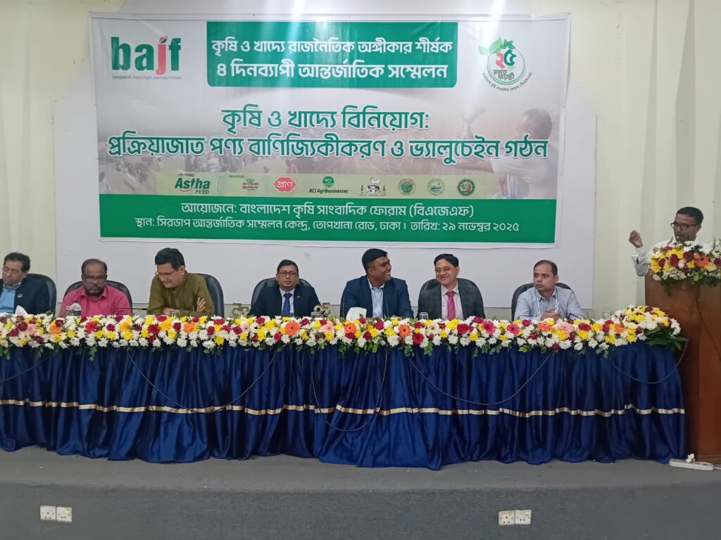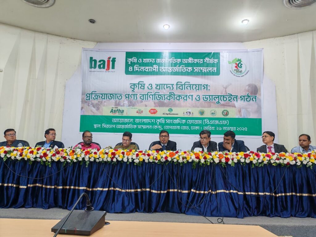 শনিবার (২৯ নভেম্বর) রাজধানীর সিরডাপ মিলনায়তনে বাংলাদেশ কৃষি সাংবাদিক ফোরাম (বিএজেএফ) আয়োজিত ৪ দিনব্যাপি কৃষি ও খাদ্যে রাজনৈতিক অঙ্গীকার সম্মেলনের ‘কৃষি ও খাদ্যে বিনিয়োগ : মান সম্পন্ন কৃষি উপকরণ ও প্রক্রিয়াজাত পণ্য এবং কৃষির বাণিজ্যিকীকরণে ভ্যালুচেইন গঠন’ শীর্ষক অধিবেশনে প্রধান অতিথির বক্তব্যে তিনি এসব কথা বলেন।