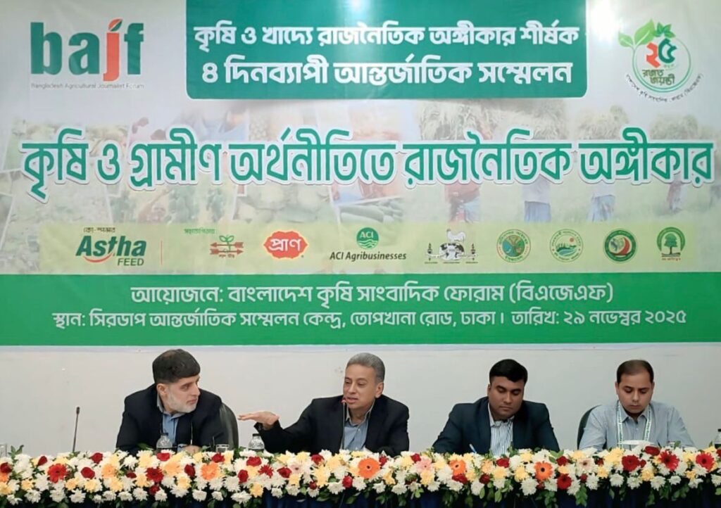 শনিবার (২৯ নভেম্বর) রাজধানীর সিরডাপ মিলনায়তনে বাংলাদেশ কৃষি সাংবাদিক ফোরাম (বিএজেএফ) আয়োজিত ৪ দিনব্যাপি আন্তর্জাতিক সম্মেলনের তৃতীয় দিনের ‘ কৃষি ও খাদ্যে রাজনৈতিক অঙ্গীকার’ শীর্ষক সেশনে প্রধান অতিথির বক্তব্যে তিনি এসব কথা বলেন।