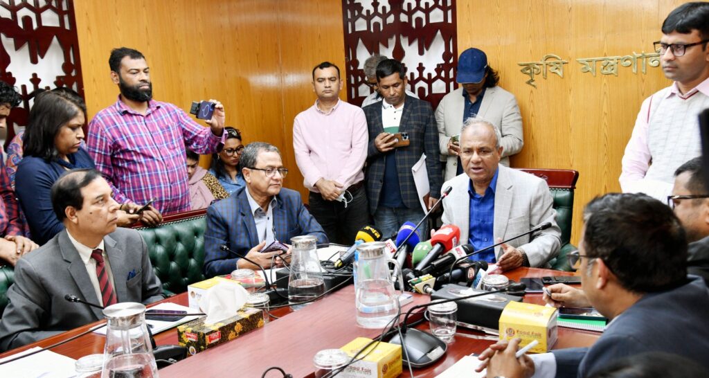 উপদেষ্টা আজ বিকালে বাংলাদেশ সচিবালয়ে কৃষি মন্ত্রণালয়ের সম্মেলন কক্ষে কৃষি সম্প্রসারণ অধিদপ্তরের অতিরিক্ত পরিচালক ও উপপরিচালকদের সাথে মতবিনিময় সভা শেষে সাংবাদিকদের ব্রিফিংকালে এ কথা বলেন।