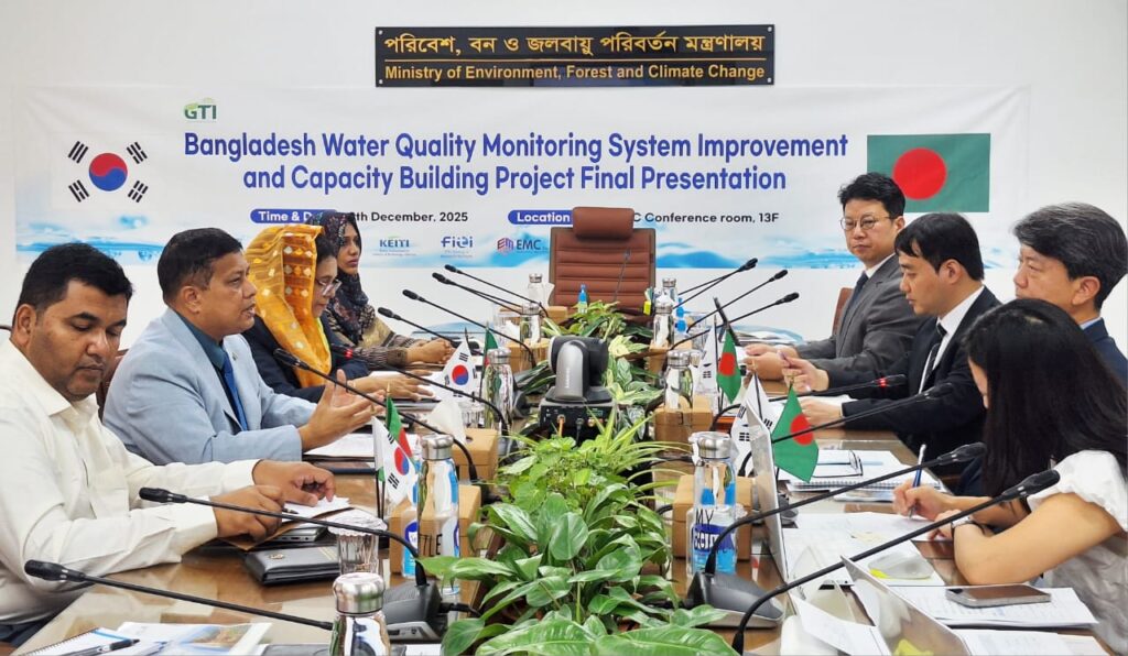 ঢাকা কেন্দ্রিক নদীগুলোর পানি মান পর্যবেক্ষণের জন্য আধুনিক, বৈজ্ঞানিক ও সমন্বিত ব্যবস্থা গড়ে তুলতে যাচ্ছে বাংলাদেশ সরকার। দক্ষিণ কোরিয়া ভিত্তিক প্রতিষ্ঠান গ্রিন ট্রানজিশন ইনিশিয়েটিভ (GTI) এ বিষয়ে সরকারকে কারিগরি সহায়তা প্রদান করছে। এ উপলক্ষ্যে “স্ট্রেংথেনিং ওয়াটার কোয়ালিটি মনিটরিং সিস্টেম ইন বাংলাদেশ ” শীর্ষক প্রকল্পের অগ্রগতি নিয়ে আজ পরিবেশ, বন ও জলবায়ু পরিবর্তন মন্ত্রণালয়ে এক বৈঠক অনুষ্ঠিত হয়।