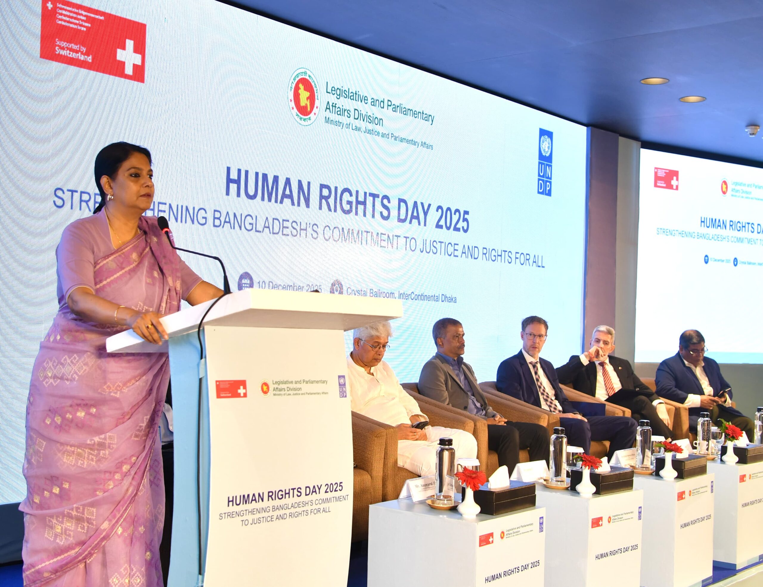 পরে মানবাধিকার দিবস ২০২৫ উপলক্ষ্যে রাজধানীর হোটেল ইন্টারকন্টিনেন্টালে আয়োজিত “সবার জন্য ন্যায়বিচার ও অধিকার নিশ্চিতকরণে বাংলাদেশের অঙ্গীকার” শীর্ষক অনুষ্ঠানে উপদেষ্টা রিজওয়ানা হাসান বলেন, সরকার ন্যায়বিচার ও মানবাধিকার নিশ্চিত করতে বদ্ধপরিকর। তিনি জানান, আইন প্রয়োগকারী সংস্থার বিরুদ্ধে অভিযোগের বিষয়ে এখন নবগঠিত পুলিশ কমিশন ব্যবস্থা গ্রহণ করবে—যা পূর্বে ছিল না। সঠিক ব্যক্তি নেতৃত্ব দিলে এটি একটি বড় অর্জন হবে বলে তিনি মন্তব্য করেন।