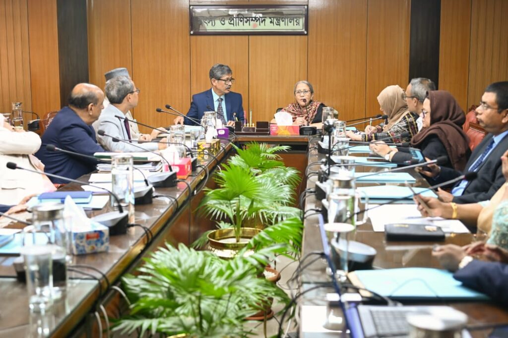 সুষম খাদ্য হিসেবে দুধ ও দুগ্ধজাত পণ্যের উৎপাদন বৃদ্ধি, মান নির্ধারণ ও নিয়ন্ত্রণ, বাজারজাতকরণ এবং সংশ্লিষ্ট কার্যক্রমের সুষ্ঠু ব্যবস্থাপনার লক্ষ্যে প্রণীত বাংলাদেশ ডেইরি উন্নয়ন বোর্ড আইন, ২০২৩-এর আওতায় গঠিত বাংলাদেশ ডেইরি উন্নয়ন বোর্ডের পরিচালনা পর্ষদের প্রথম সভা আজ সকালে মৎস্য ও প্রাণিসম্পদ মন্ত্রণালয়ের সম্মেলন কক্ষে অনুষ্ঠিত হয়েছে।