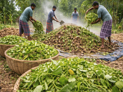 লতাপাতা ও গাছগাছলি দিয়ে সবুজ সার তৈরী।।